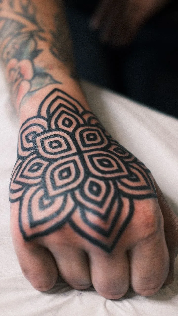 "My end goal for a tattoo has always been to create something far more meaningful than just imagery. By working with geometric patterns, I aim to infuse intention into my tattoos, resulting in artwork that not only looks stunning but also has a profound impact on my clients’ souls and skin."